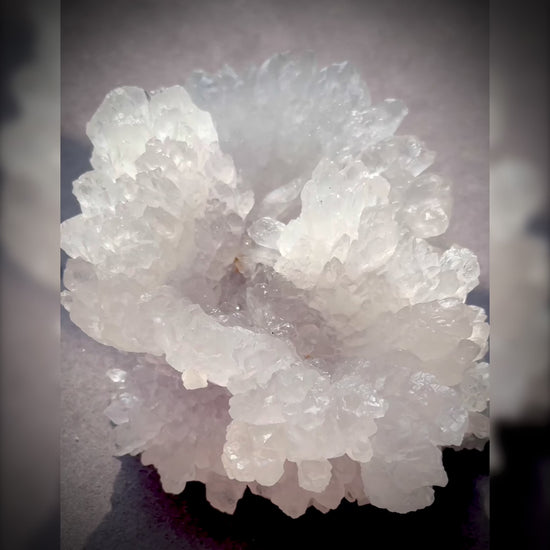 顏色高雅脫俗,有如一朵花從中間四方百面伸展,由無數晶軸組成