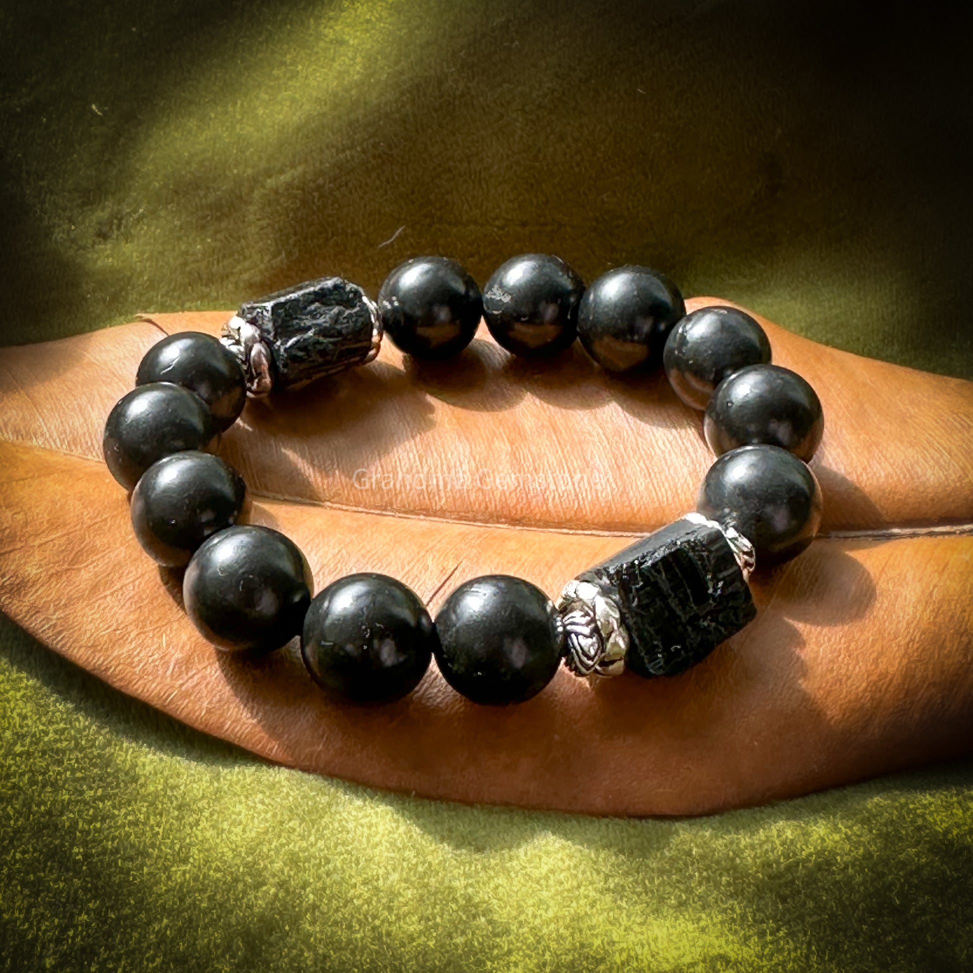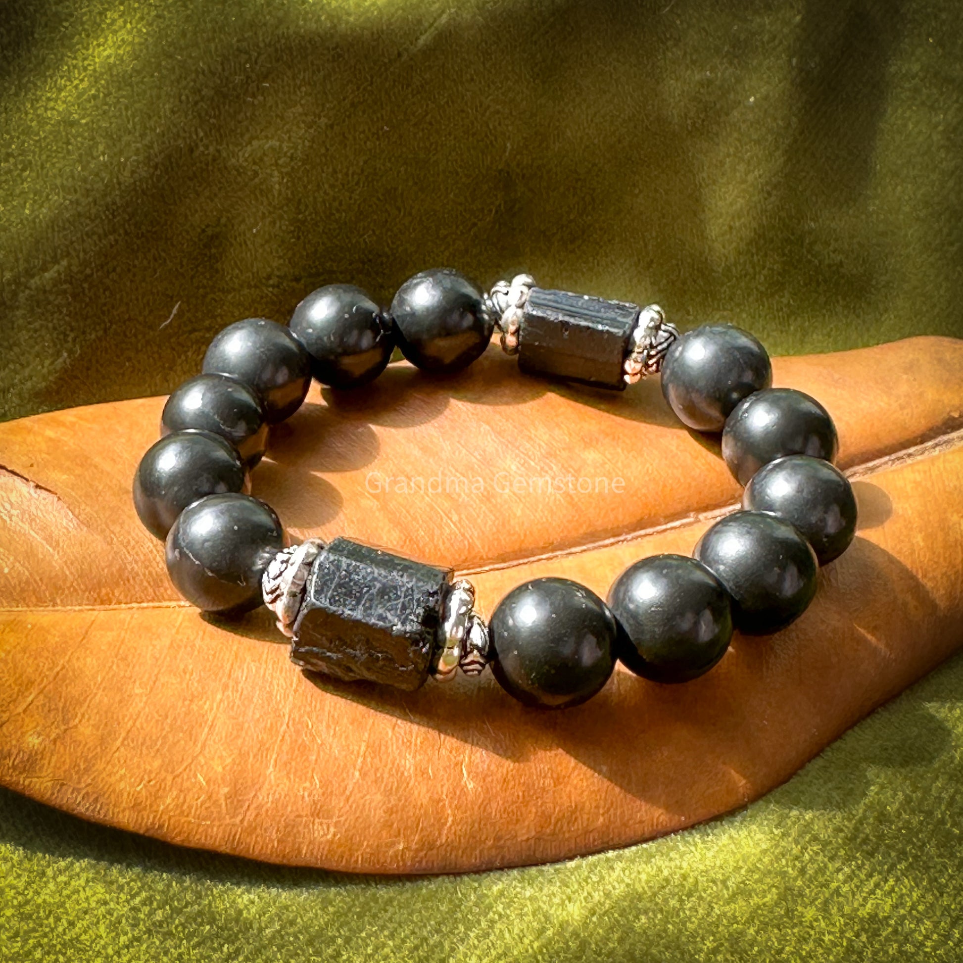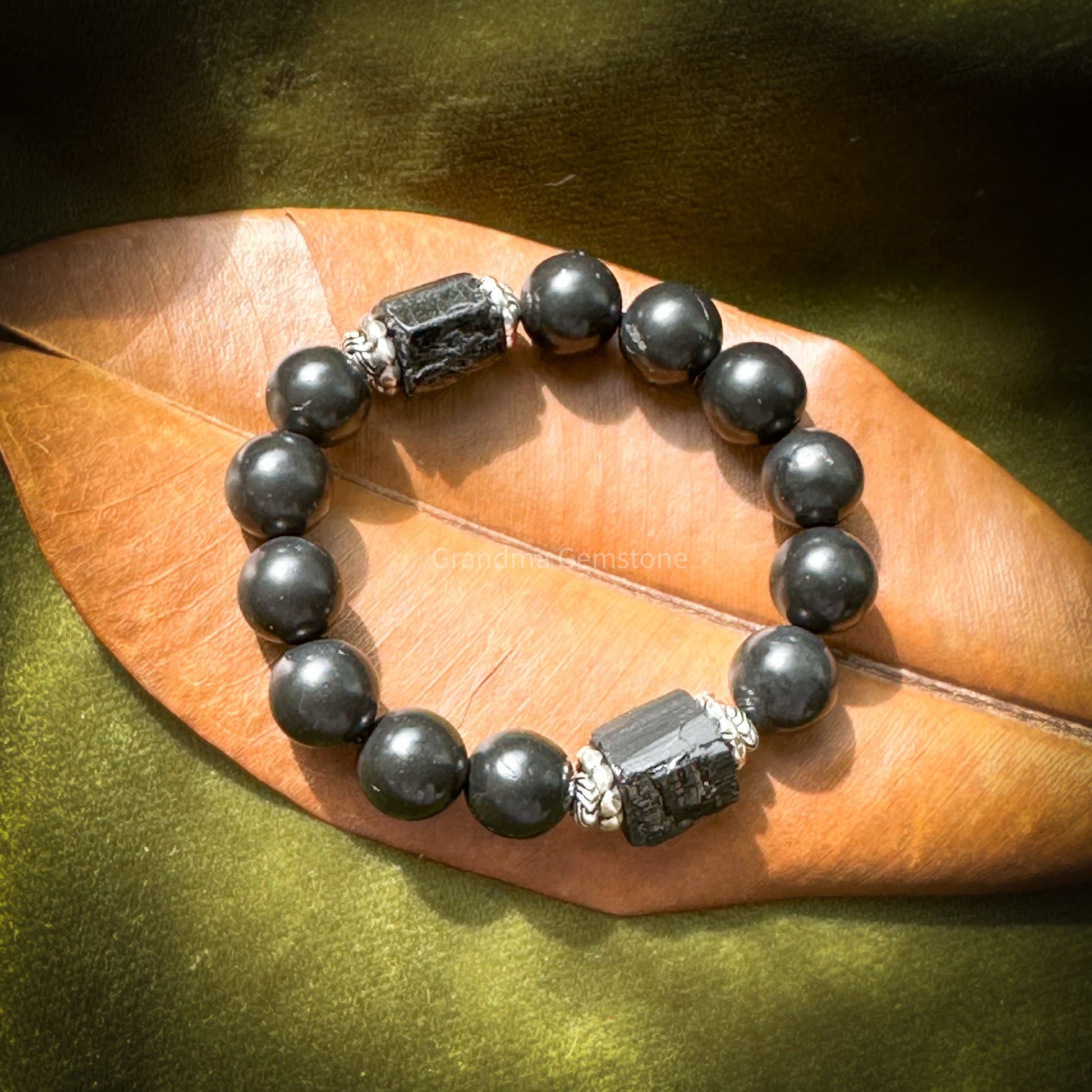 次石墨 x 黑碧璽原石 手鏈 S06 - 圓珠尺寸 Bead size: 12mm